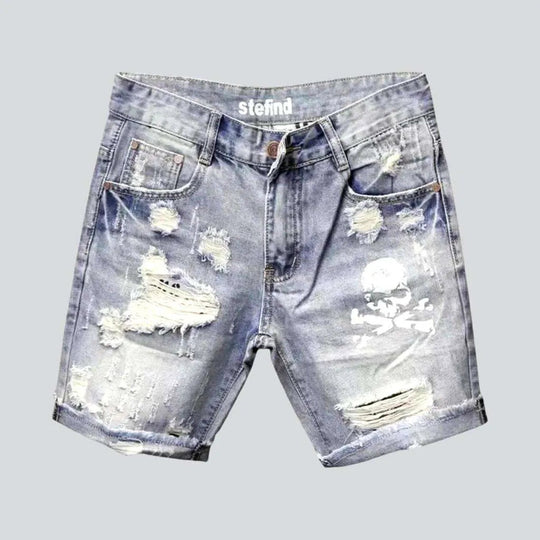 Distressed denim shorts for men